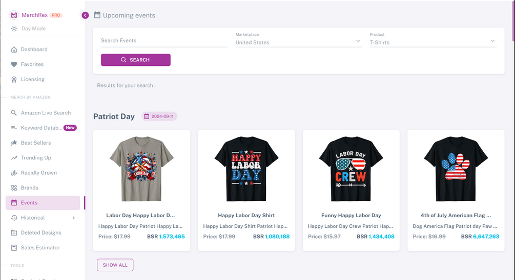 Unlock your full selling potential with a suite of powerful features tailored to meet the unique needs of Merch By Amazon sellers. From lightning-fast product research to trend analysis. It's a game-changer.